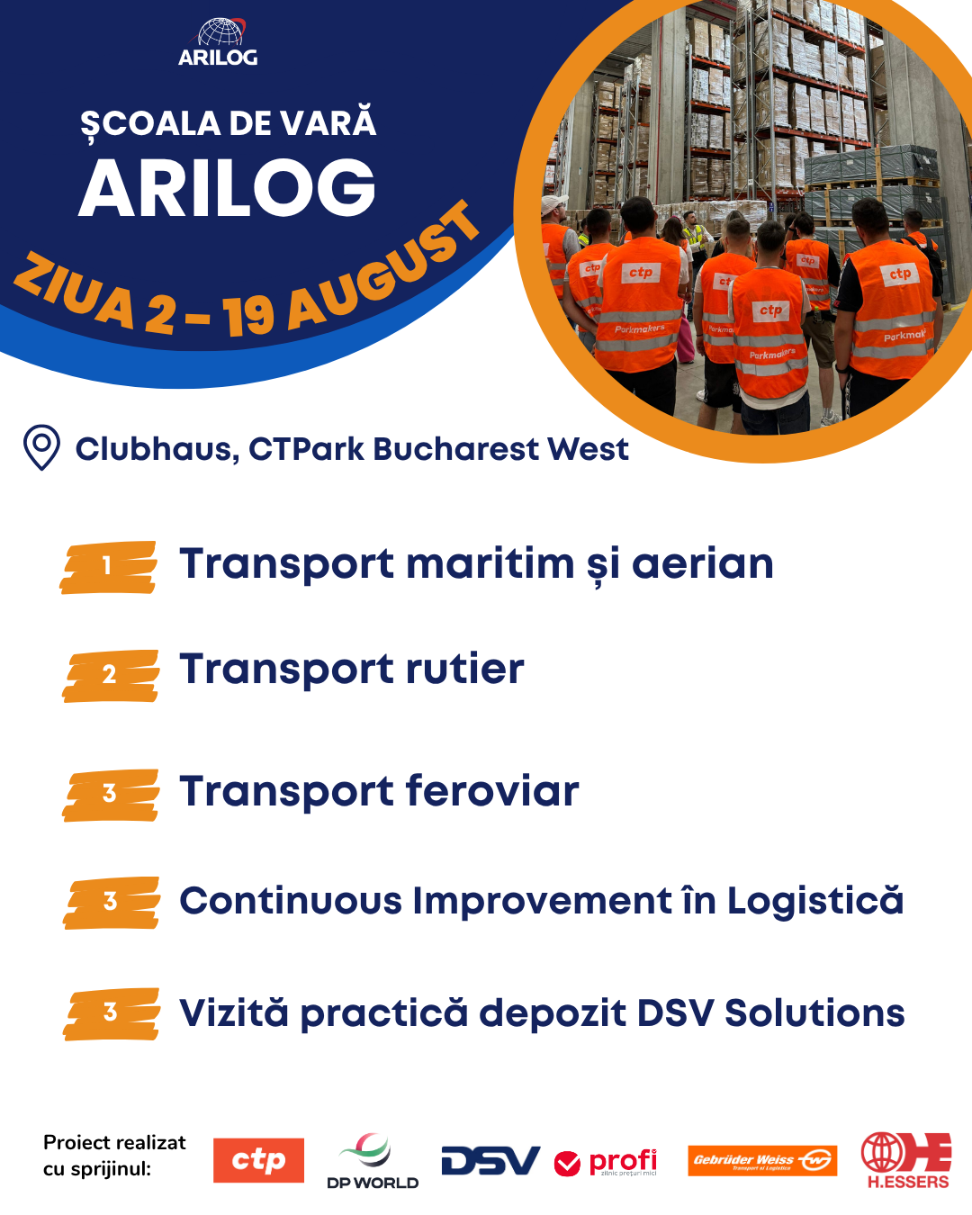 Școala de Vară ARILOG reprezintă un proiect dedicat tinerilor care vor să aprofundeze noțiuni teoretice și practice în domeniul operațiunilor de logistică și supply chain. Scopul acestui proiect este construit pe trei direcții importante: